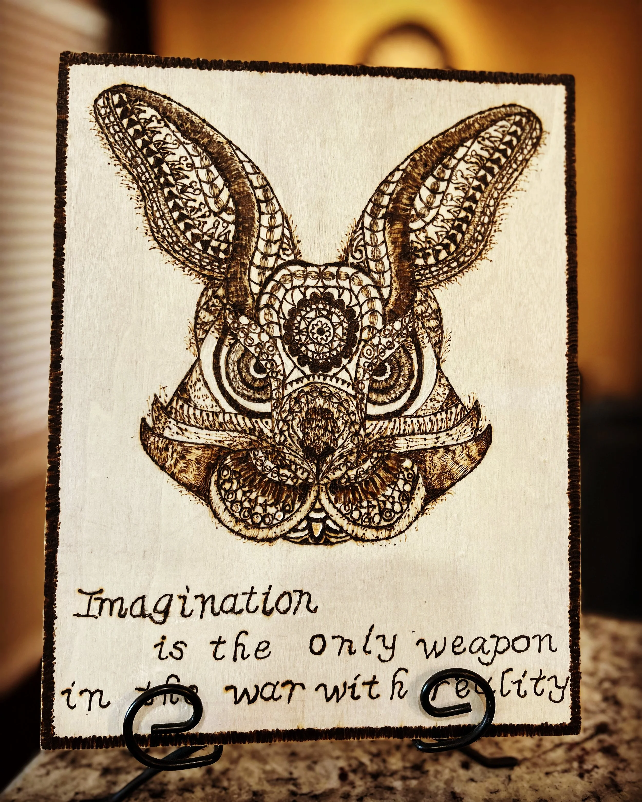 This portfolio is more than a gallery — it’s a record of resilience, rebellion, and imagination. My work moves between surrealism, symbolism, and boho fiber art, but always circles back to the same truth: art should never be boring. Each painting, pyrography piece, or macramé wall hanging carries a story — sometimes raw, sometimes playful, but always bold. Every piece is created for collectors who crave the unusual, they’re built to stop you in your tracks, make you think, and stay with you long after you’ve walked away.